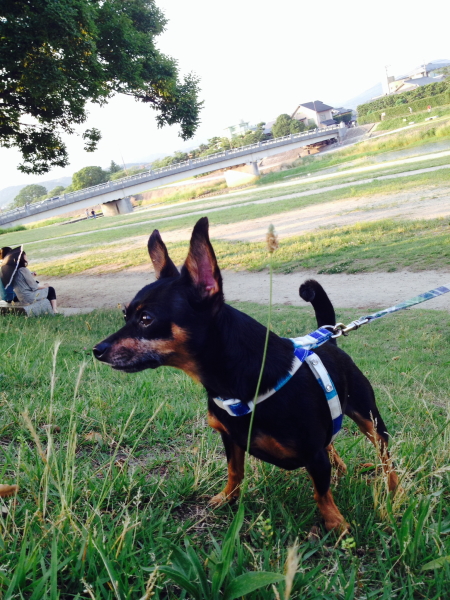 という感じで、土手の斜面を一気に駆け上るレントくん。